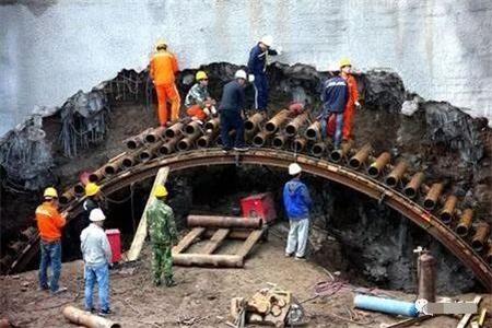 黎母山镇钢花管施工测绘及施工事项钢花管注浆施工过程钢花管注浆是通过钻孔将注浆管放入地层中,并采用分阶段注浆工艺使浆液在压力条件下更均匀地进入地层,从而实现浆液的分段可控,均匀分布的目的,在注浆过程中设置注浆外管,注浆外管将留在土...
